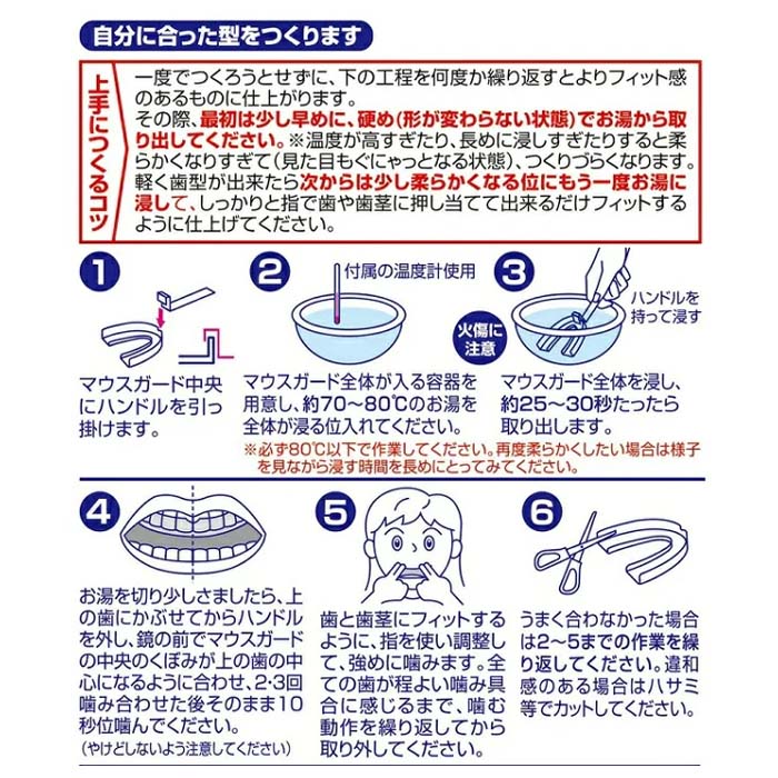 - Dễ sử dụng và vệ sinh: Chỉ cần ngâm máng trong nước ấm khoảng 70–80°C trong 20–30 giây để làm mềm, sau đó đưa vào miệng để tạo hình theo khuôn răng. Sau khi sử dụng, rửa sạch và phơi khô để bảo quản.
