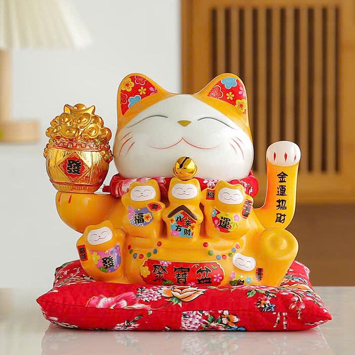 - Vị trí đặt: Nên đặt mèo thần tài tại những nơi trang trọng, hướng mặt ra cửa chính, quầy thu ngân hoặc khu vực tiếp khách để thu hút vận may và tài lộc hiệu quả nhất.